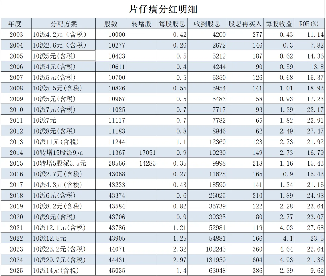 假设投资人在公司上市首日以收盘价15.98元购入1万股一直呆坐不动至今,只是在收到股息时就无脑按市价继续购入股票,持有其间共收到现金股息分红62.6万,用股息购入4087股(假设可购买不足100股的数量),截止到2026年2月27日,总共持有45035股,市值734.58万元,收益46倍,年化收益率为18.11%。从上述股东回报率来看,片仔癀是一家值得拥有的好公司。