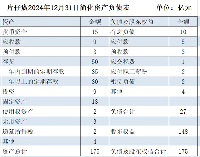 公司2024年12月31日拥有资产175亿元。货币资金15亿元,一年内定期存款35亿元,一年以上的定期存款30亿元,合计80亿元,占总资产的46%。