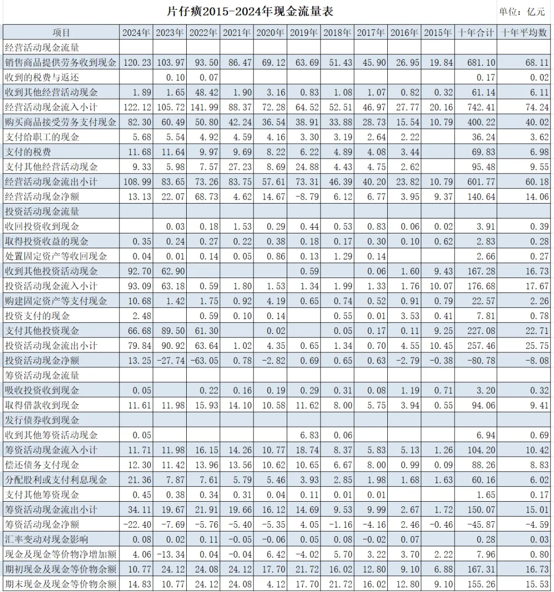 期末现金及现金等价物余额2024年14.83亿元,2015年为6.88亿元,十年间增长了7.95亿元。