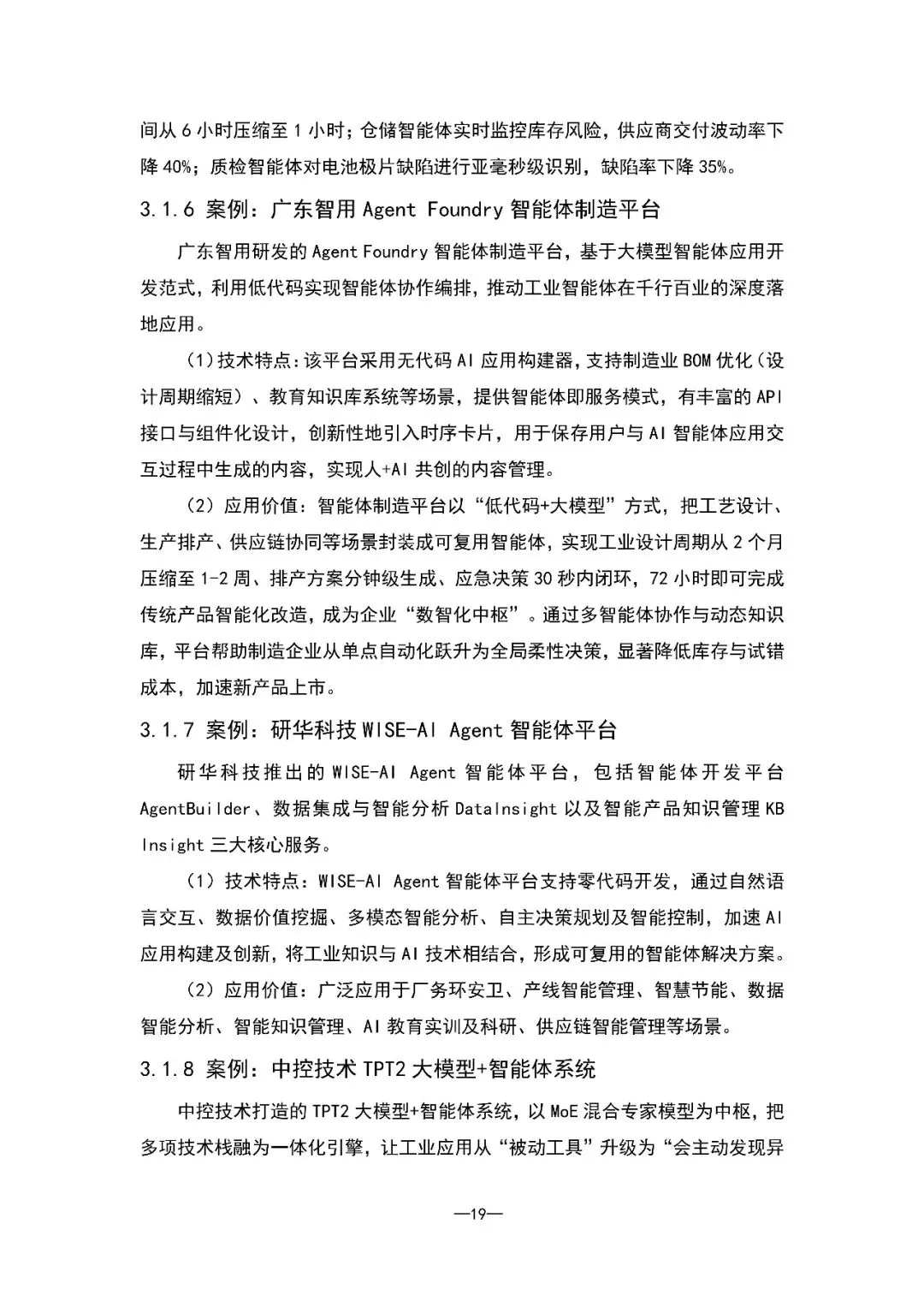 白皮书收录了华为、西门子等16个国内外案例,提出"感知-认知-决策-执行-协同"五层技术架构,并强调云边端协同、知识图谱等关键技术。根据工信部文件,工业智能体被列为人工智能与服务型制造融合的重要方向。
