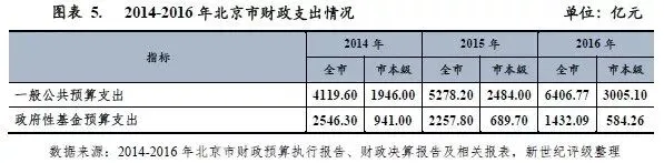 从国有资本经营收入来看,2014-2016年北京市国有资本经营收入分别为64.46亿元、61.34亿元和66.10亿元,主要为国企上缴利润和一般公共预算转入国有资本经营预算资金。随着国企改革的推进,该部分收入有所波动,但是国有资本经营收入占北京市财政收入的比例相对较小,影响有限。