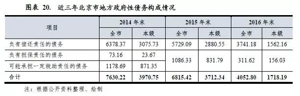 从城投企业带息债务规模看,根据Wind统计数据,截至2016年末北京市城投企业带息债务余额2.18万亿元,规模较大,但其中经营性业务负债占比高,加之相关企业资产质量好,盈利能力强,整体债务负担仍处于合理水平。