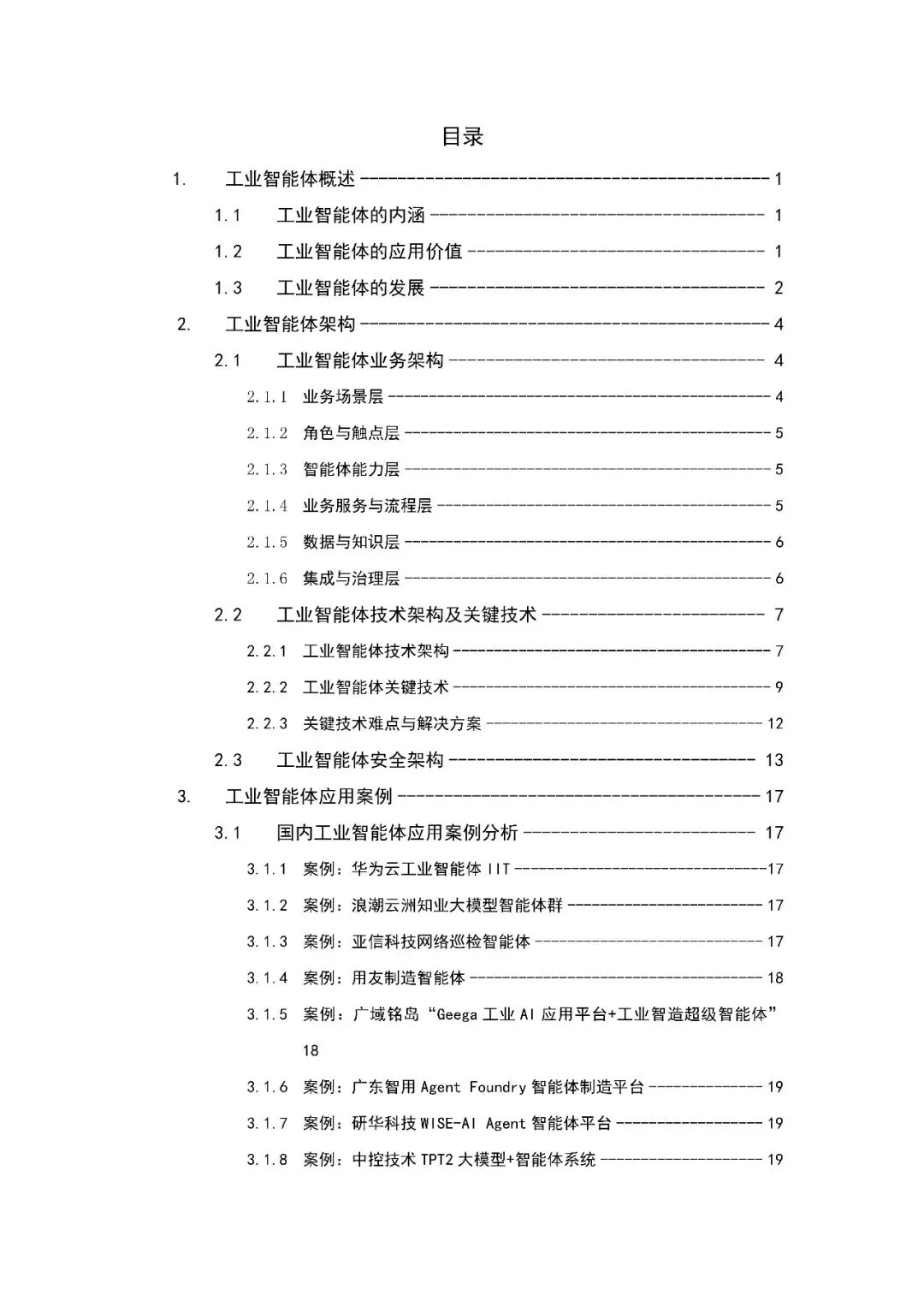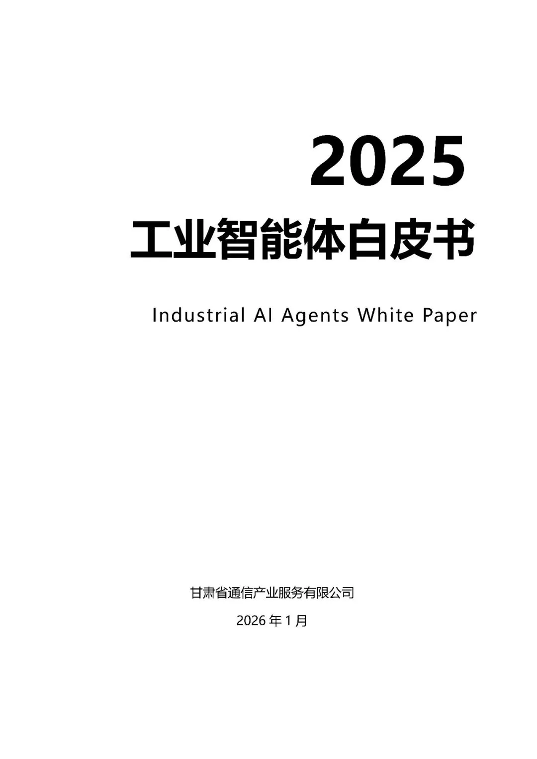 《2025工业智能体白皮书》是由甘肃省通信产业服务有限公司在2026年1月发布的行业技术报告,系统解析了工业智能体的技术架构、应用场景及安全框架。该白皮书定义工业智能体为融合大模型与工业知识的自主决策系统,具备感知环境、分析数据、执行任务并持续学习的能力,典型应用于预测性维护、排程优化等领域。