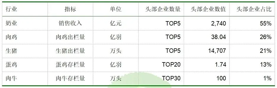 中国畜牧子行业集中度对比