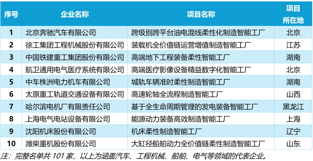 2025年度,共有101家装备制造相关企业通过卓越级智能工厂评审,是四大行业中最多的,涵盖汽车、工程机械、船舶、航空航天、电气设备、仪器仪表等多个领域。