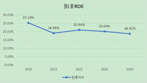 近五年都保持在15%以上,除了2021年有一个比较明显较大的降幅,其他年份还算平稳。