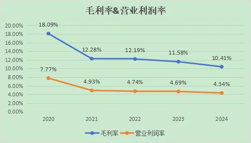 第一张图展示出毛利率和营业利润率均逐步下降并且未见反转迹象。