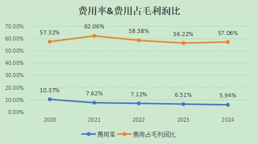第二张图展示出费用率在逐年小幅缓慢的下降,但是费用占毛利润的比例却没有如预期当中的逐年下降,甚至在近两年还有小幅的上涨,需要重点了解具体原因。