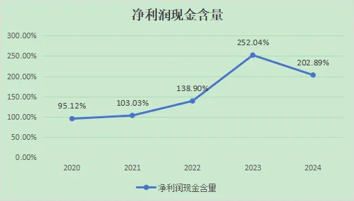 第二张图展示出净利润现金含量逐年递增并稳定在100%以上的优秀状态。