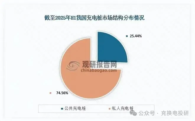 从市场结构来看,当前我国充电桩市场主要以私人充电桩为主。数据显示,截至2025年6月我国私人充电桩数量为1200.4万台,同比增长63.3%,占比为74.56%;公共充电桩数量为409.6万台,同比增长36.7%,占比为25.44%。