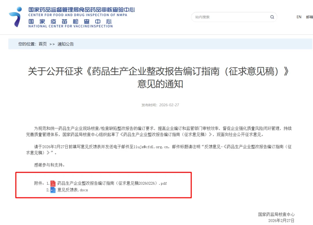 2026年2月27日,国家药监局核查中心发布了一则重磅消息《药品生产企业整改报告编订指南(征求意见稿)》。这一指南的出台,药品生产行业的合规管理引起了广泛关注。详细阐述了药品生产企业在接受药品监管部门组织的现场检查后,针对检查发现的缺陷,如何按照实际整改情况,编订反映企业调查分析、风险评估、风险控制(含纠正措施和预防措施)、完成情况等内容以及整改证明材料等一系列文件和记录。