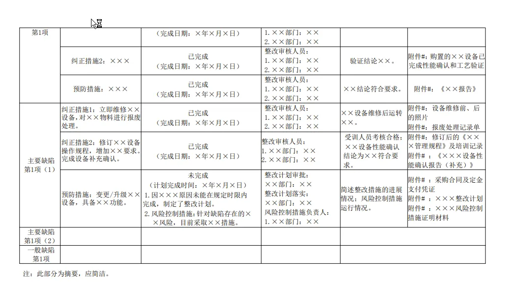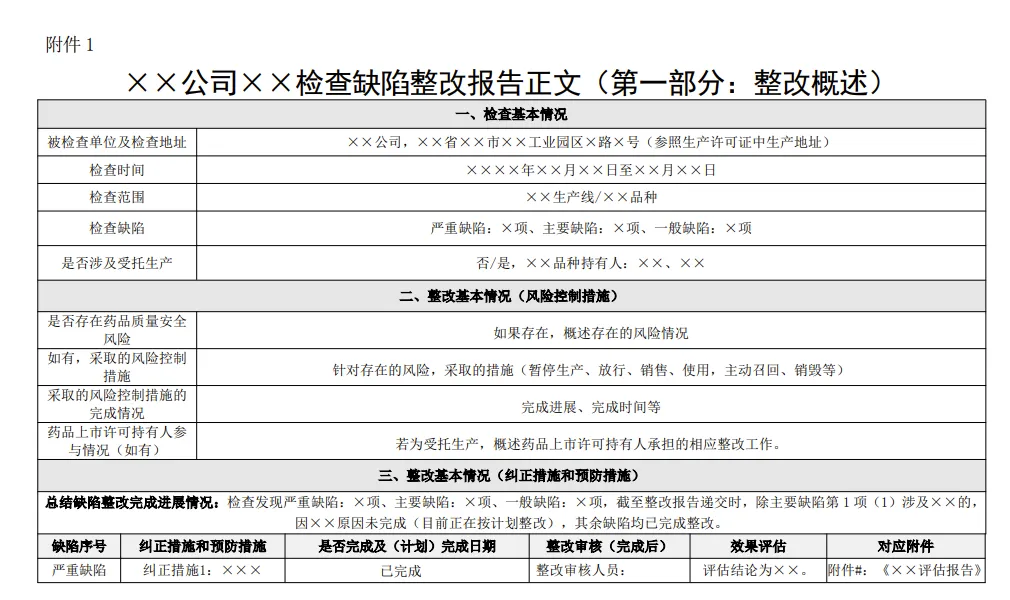 附件 1×× 公司 ×× 检查缺陷整改报告正文(第一部分:整改概述)