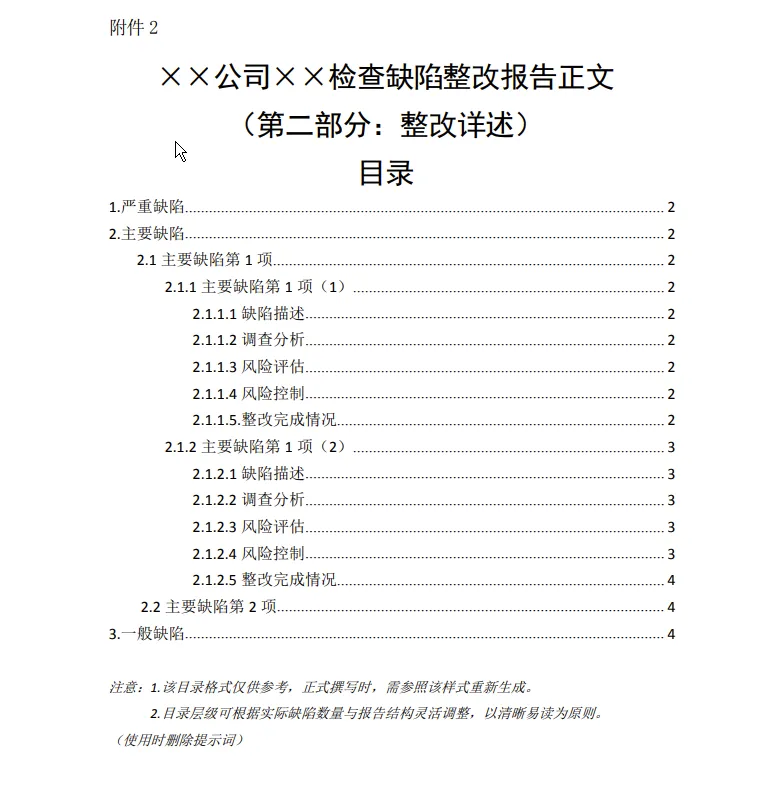 附件 2×× 公司 ×× 检查缺陷整改报告正文(第二部分:整改详述)