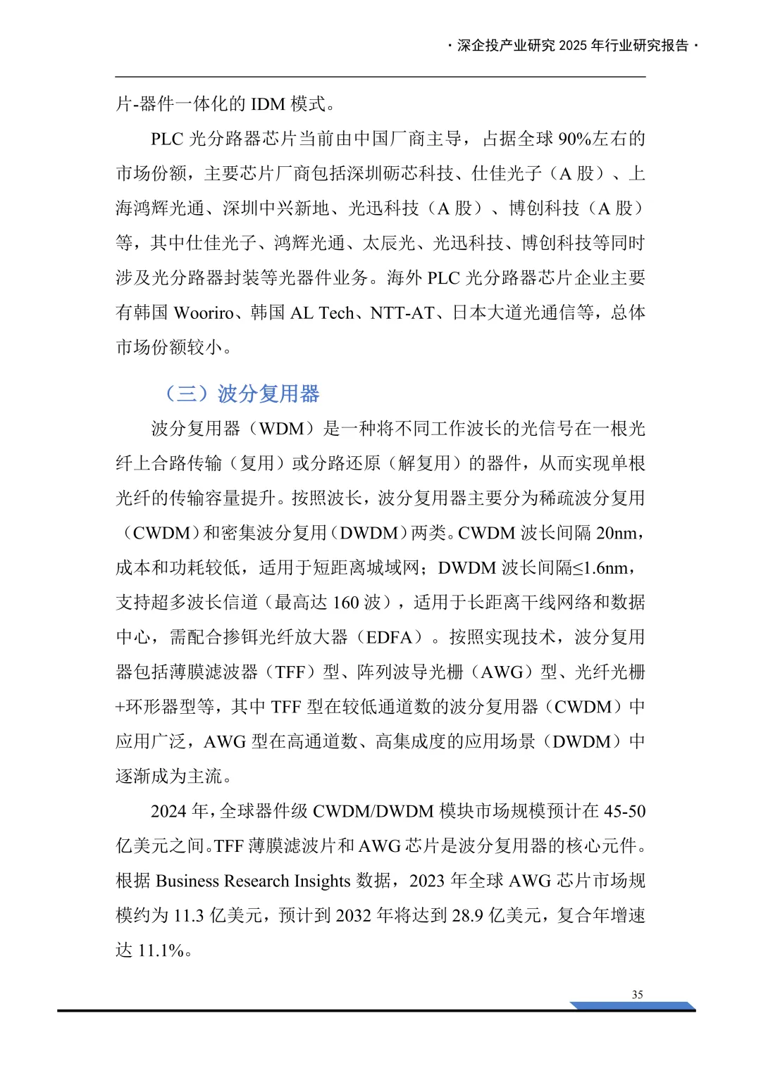 细分领域产品、市场、竞争格局(光电芯片、光器件、光模块与光通信设备)
