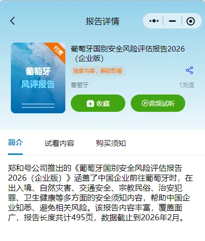 葡萄牙国别风险评估报告2026(企业版)现已上线