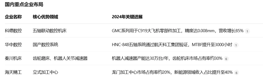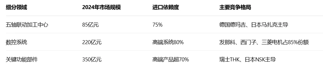 市场特征:呈现"低端饱和、中端竞争、高端短缺"特征。低端数控机床国产化率95%,中端65%,高端不足10%。