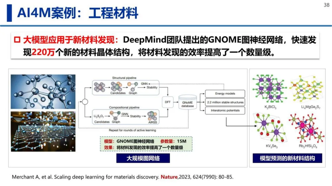 报告系统阐述了大、小、微模型赋能先进制造的实践与思考。先进制造是衡量国家科技发展水平的重要标志,世界主要工业强国均将其作为战略重点。人工智能作为科学研究的第四范式,正深刻重塑制造全生命周期技术体系。报告将AI模型按参数量级分为三类:大模型参数量达十亿至万亿级,通用性强但训练成本极高,适用于智能工厂和多机协同。小模型参数量为百万至数亿级,专用性强、响应快,适用于装备监测和数字孪生。微模型参数量在百万以下,高度定制化、极低延迟,适用于边缘侧实时控制和优化设计。研究进展覆盖工程材料、设计优化、加工装配、控制运维四大领域。在材料领域,DeepMind的GNOME图神经网络发现220万个新材料结构,效率提升一个数量级。在设计领域,PINN小模型实现流场重构,Bi-LSTM模型预测精度达99%。在加工领域,BRNet神经网络实现毫秒级刀具路径规划。在运维领域,概率图模型构建数字孪生实现实时状态监测。当前面临六大挑战:实测数据少、多源数据杂、物理规律缺、训练成本高、泛化能力低、预测精度低。未来发展方向包括:实测数据处理技术、大小微模型融合技术、领域专业小模型开发、有效数据库集成、云边结合的软件开发。