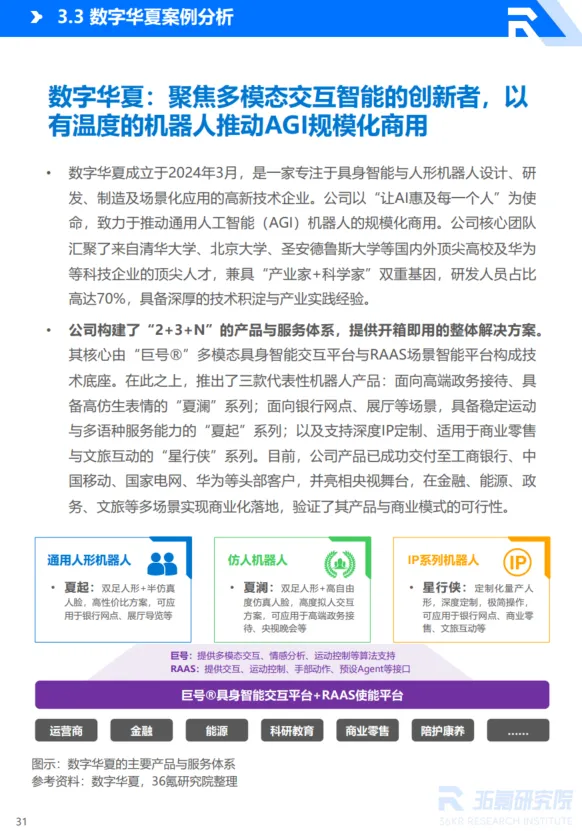 聚焦多模态交互智能,自研情感计算与仿生表情。“夏澜”“夏起”系列已在金融、能源等高壁垒领域落地,意向订单超1500台。