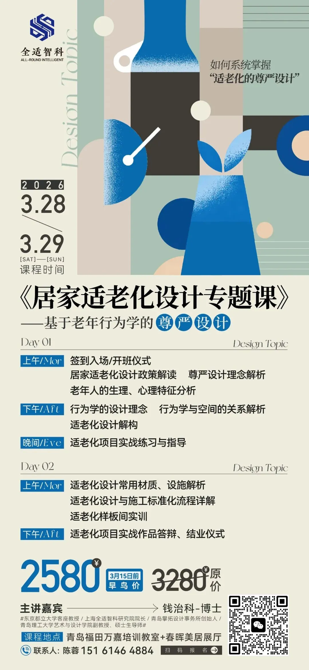 3月28日,在青岛有一场聚焦《居家适老化设计——基于老年人行为学》的专业课程。