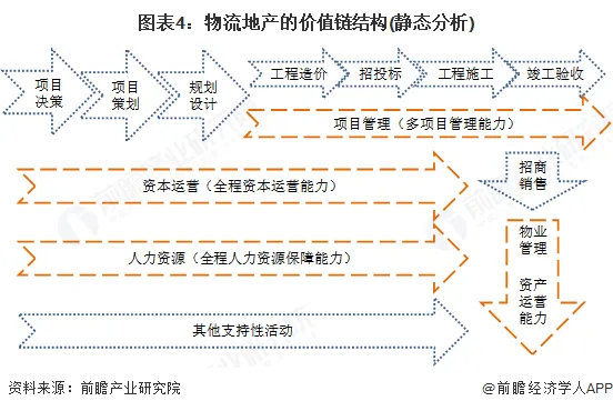 按照迈克尔·波特的价值链理论,不同的企业参与的价值活动中,并不是每个环节都创造价值,只有某些特定的价值活动才真正创造价值,这些真正创造价值的经营活动,就是价值链上的战略环节。企业要保持的竞争优势,实际上就是企业在价值链某些特定的战略环节上的优势。这也就意味着,物流地产企业需特别关注和培养在价值链的战略环节上获得重要的核心能力,以形成和巩固企业在行业内的竞争优势。