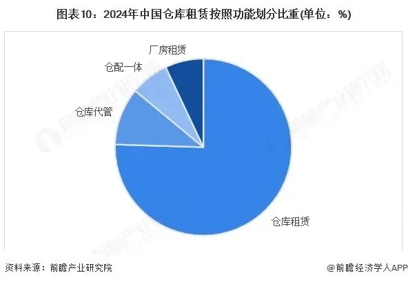 随着电商行业的蓬勃发展,越来越多的企业需要存储和分发商品,这导致了仓库空间需求的急剧增长。共享经济的概念在过去几年内迅速蔓延,仓库出租领域也不例外。通过共享模式,企业可以将闲置的仓库空间分享给其他企业,从而最大程度地利用资源。仓库出租服务商通常提供多种租赁模式,包括短期租赁、长期租赁和灵活租赁等。这种灵活的租赁模式为创业者提供了更多选择,可以根据实际需求进行租赁。2024年仓库按需求功能划分,仓库租赁需求占比最大,为75.44%。其次是仓库代管,为10.5%,仓配一体和厂房租赁均为7%。