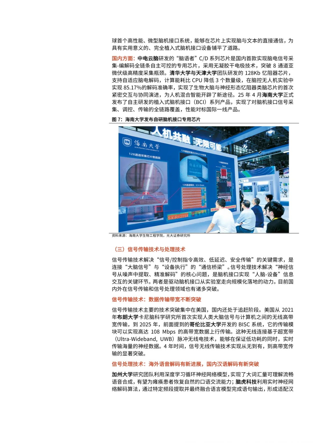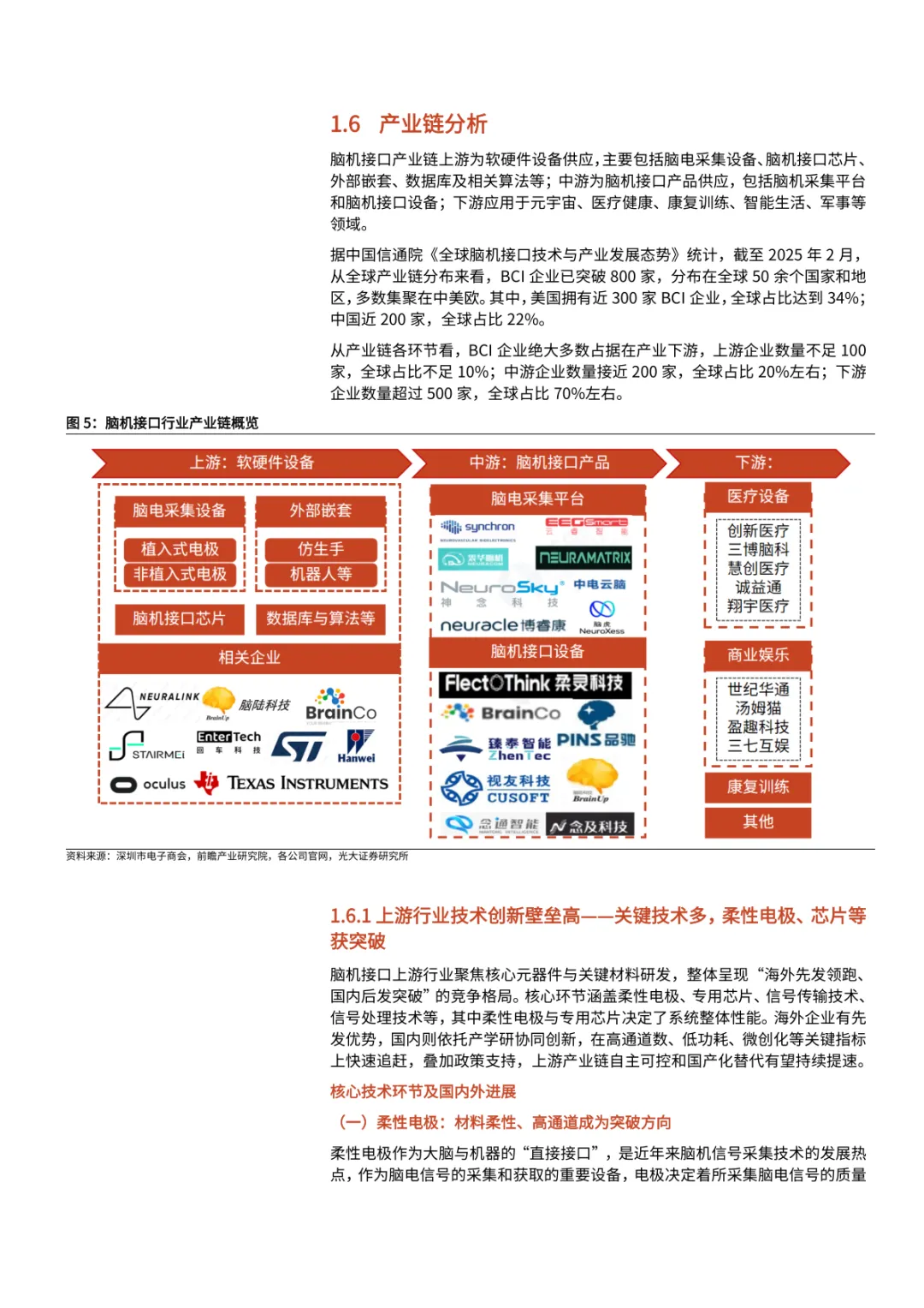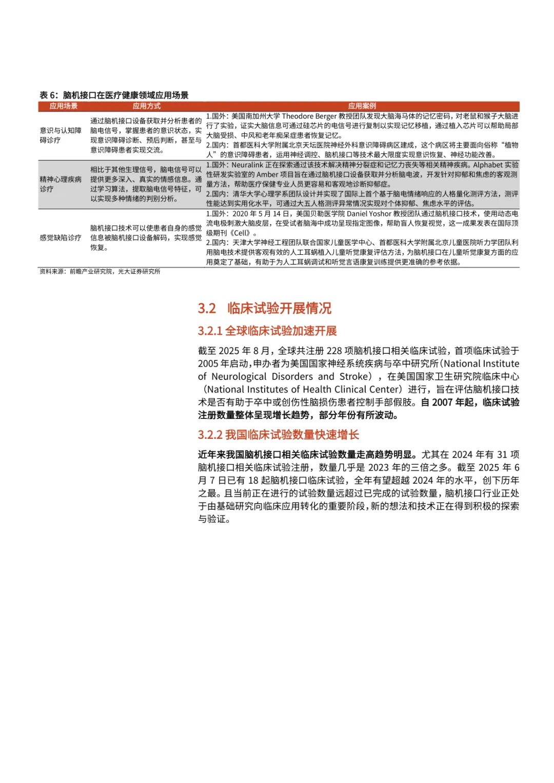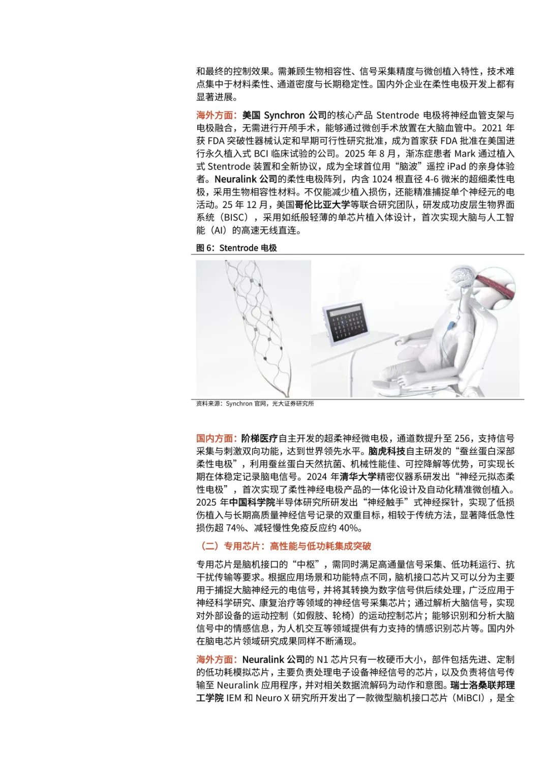 导读:脑机接口技术通过大脑与外部设备的直接信息交互,分为侵入式、半侵入式和非侵入式三类,在医疗康复等领域应用最为成熟。全球市场规模预计 2029 年达 76.3 亿美元,投融资活动活跃,中美欧企业占据主要市场份额。国内外技术突破持续涌现,海外企业在侵入式领域领先,Neuralink 完成多例人体植入,Synchron 实现脑控电子设备。国内企业与科研机构协同发力,在柔性电极、专用芯片等核心部件取得进展,实现汉语实时解码等技术突破,临床试验数量快速增长。政策层面,多国出台专项计划支持行业发展,我国从国家到地方密集发布政策,完善监管与标准体系,推动产业创新。行业应用以医疗为核心,聚焦肢体运动障碍、感觉缺陷等诊疗场景,同时向多领域延伸,未来将在技术攻坚、商业化落地与生态构建上持续推进。