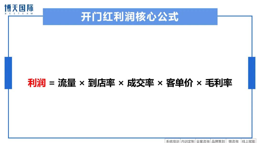 利润 = 流量 × 到店率 × 成交率 × 客单价 × 毛利率