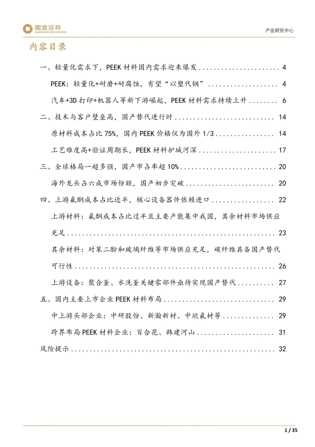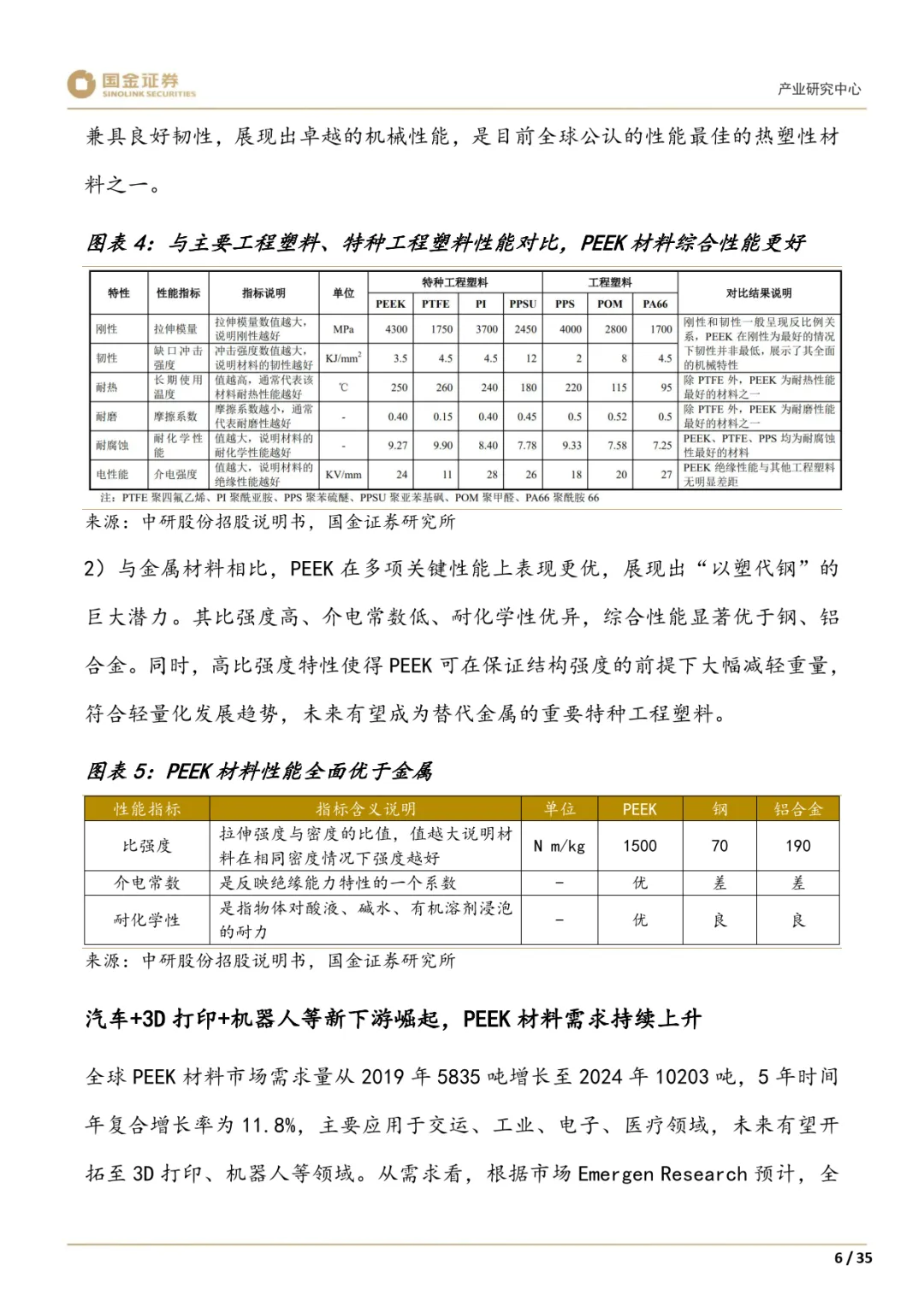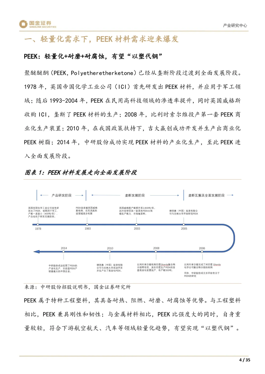 “PEEK:高壁垒的轻量化材料,需求爆发进行”由国金词证券发布。