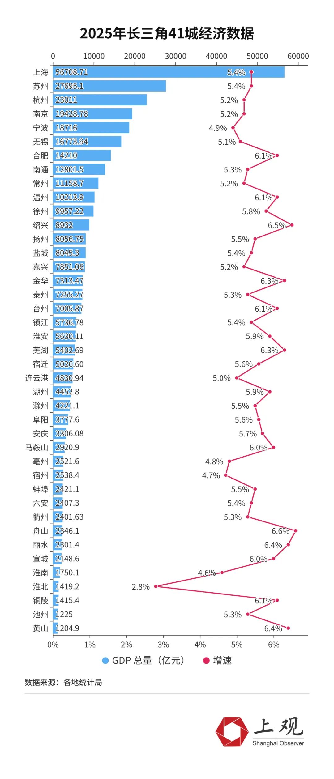 近日,长三角地区41城2025年主要经济指标均已发布。