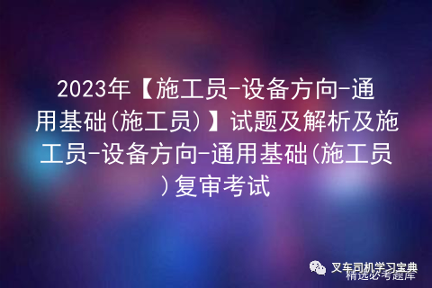 施工员-设备方向-通用基础(施工员)试题及解析考前必练!安全生产模拟考试一点通每个月更新施工员-设备方向-通用基础(施工员)复审考试题目及答案!多做几遍,其实通过施工员-设备方向-通用基础(施工员)模拟考试题库很简单。