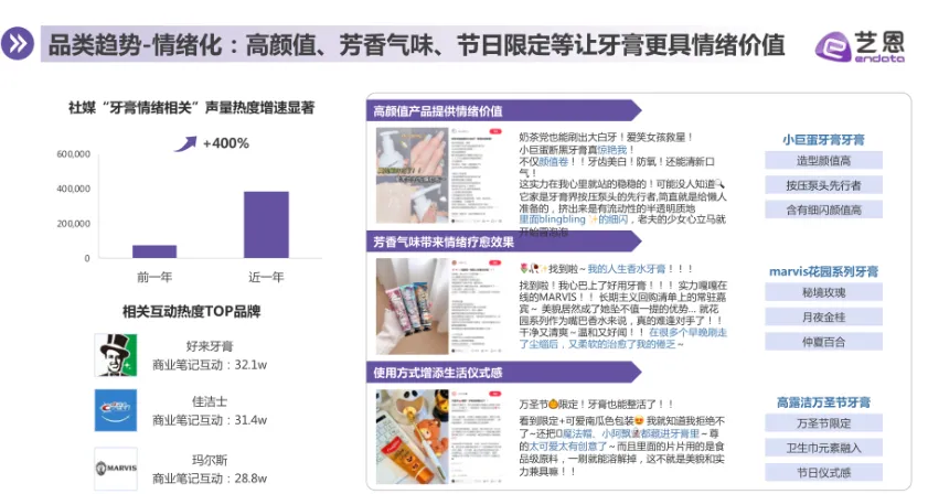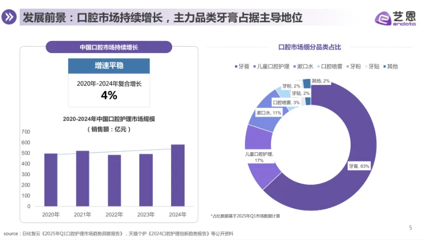 口腔护理的精细化协同: 针对早、晚、餐后、美白、抗敏等不同细分时刻和需求的牙膏产品增长迅猛。(参考:艺恩,2025牙膏品类报告)