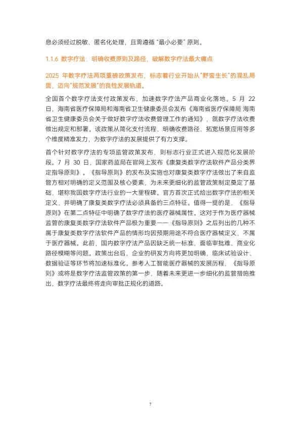 - 数字疗法: 海南发布全国首个支付政策,国家药监局出台专项监管指导原则,行业走向规范化。