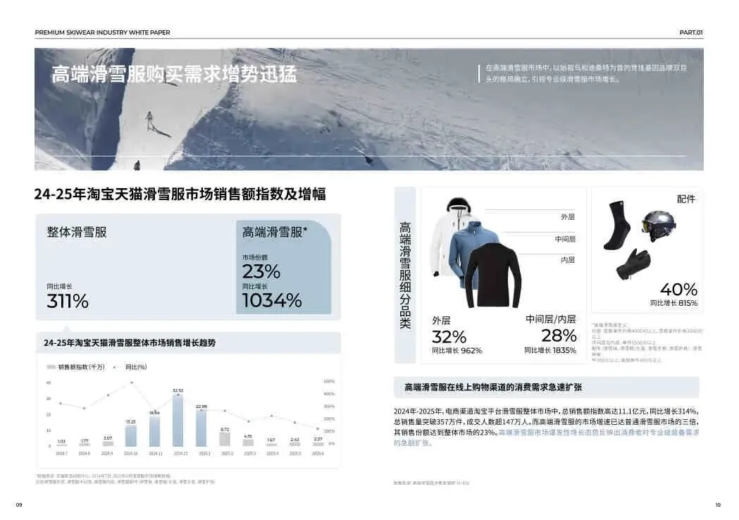 - 市场规模: 高端滑雪服(单件≥4000元)市场在2024-2025雪季实现显著增长。