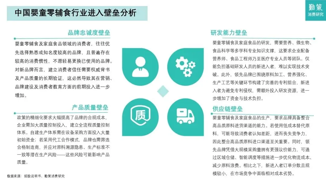 消费者对婴童零辅食品牌具有较高的消费惯性,新品牌需投入大量资源进行市场教育与品牌建设;政策对产品质量的精细化要求,推动企业加大品控投入,构建全流程质量体系;研发能力的专业化要求,使得企业需配备多学科研发团队;而高品质原料渠道的整合能力,更是决定企业产品竞争力的关键。