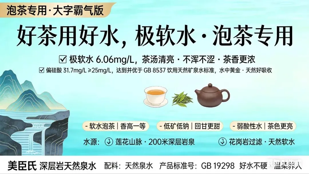 - 美臣氏口感:极软质地带来极致顺滑体验,是高端饮水、冲奶、泡茶的最优选择。