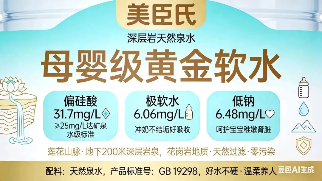 - 偏硅酸:31.7mg/L → 护血管、促骨骼发育,抵消极软水健康隐患