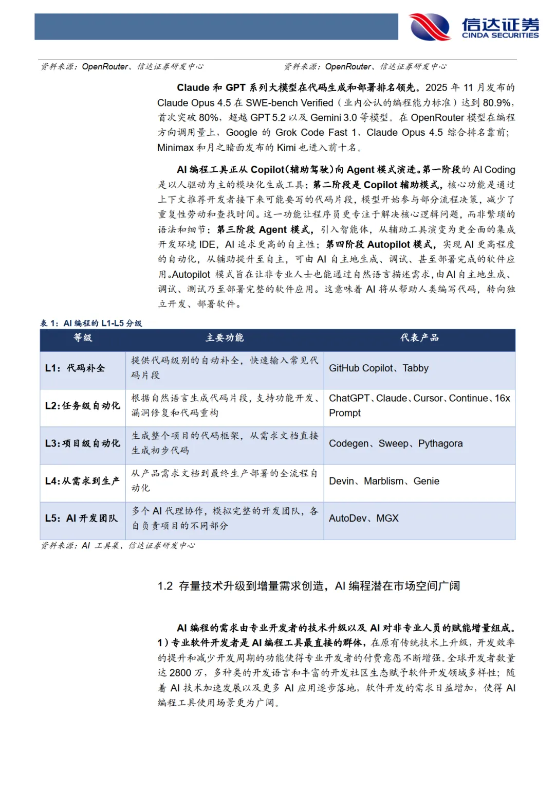 “AI编程:重塑软件开发新范式,应用生态加速繁荣”由信达证券发布。
