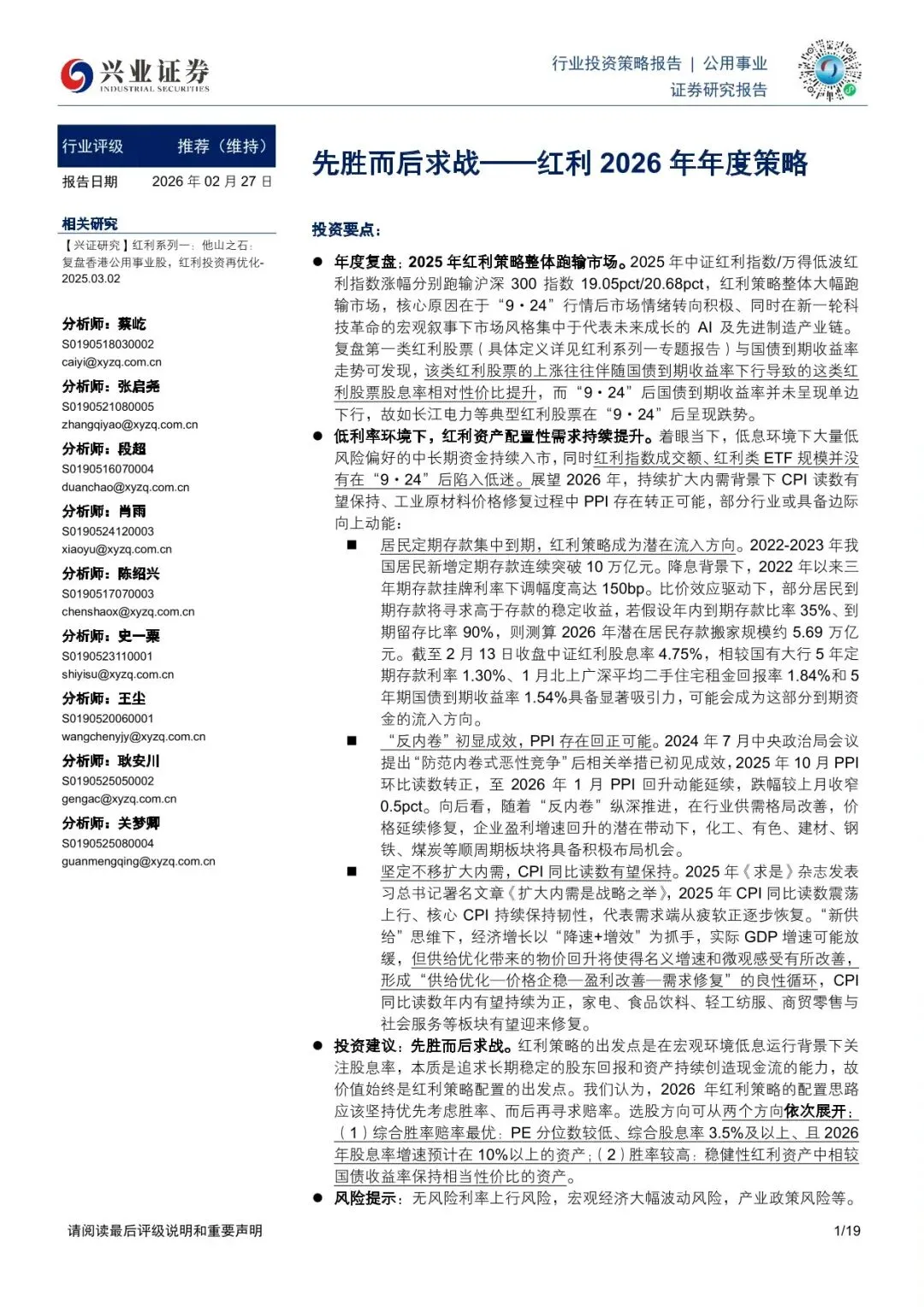 公用事业行业投资策略报告:先胜而后求战——红利2026年年度策略