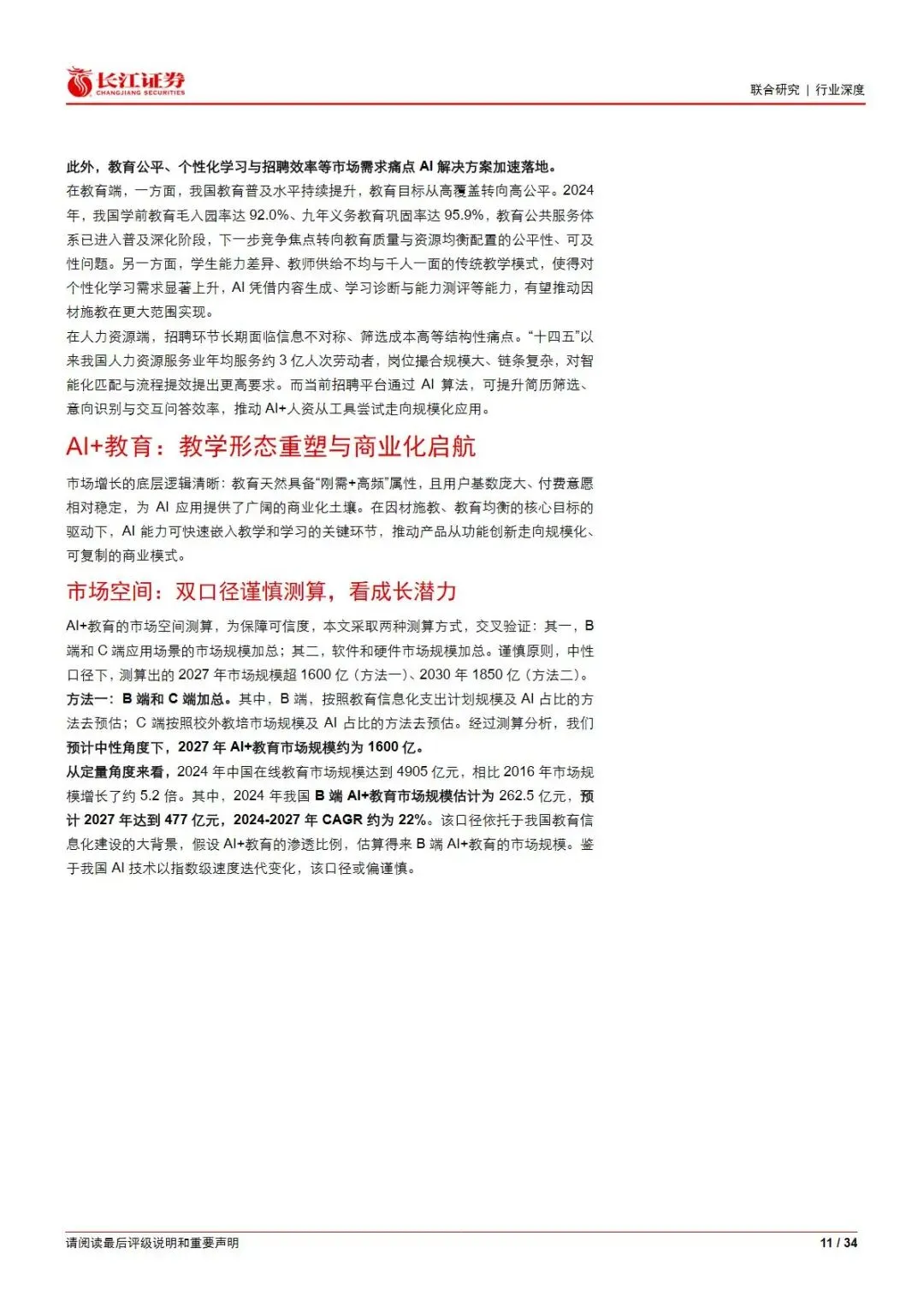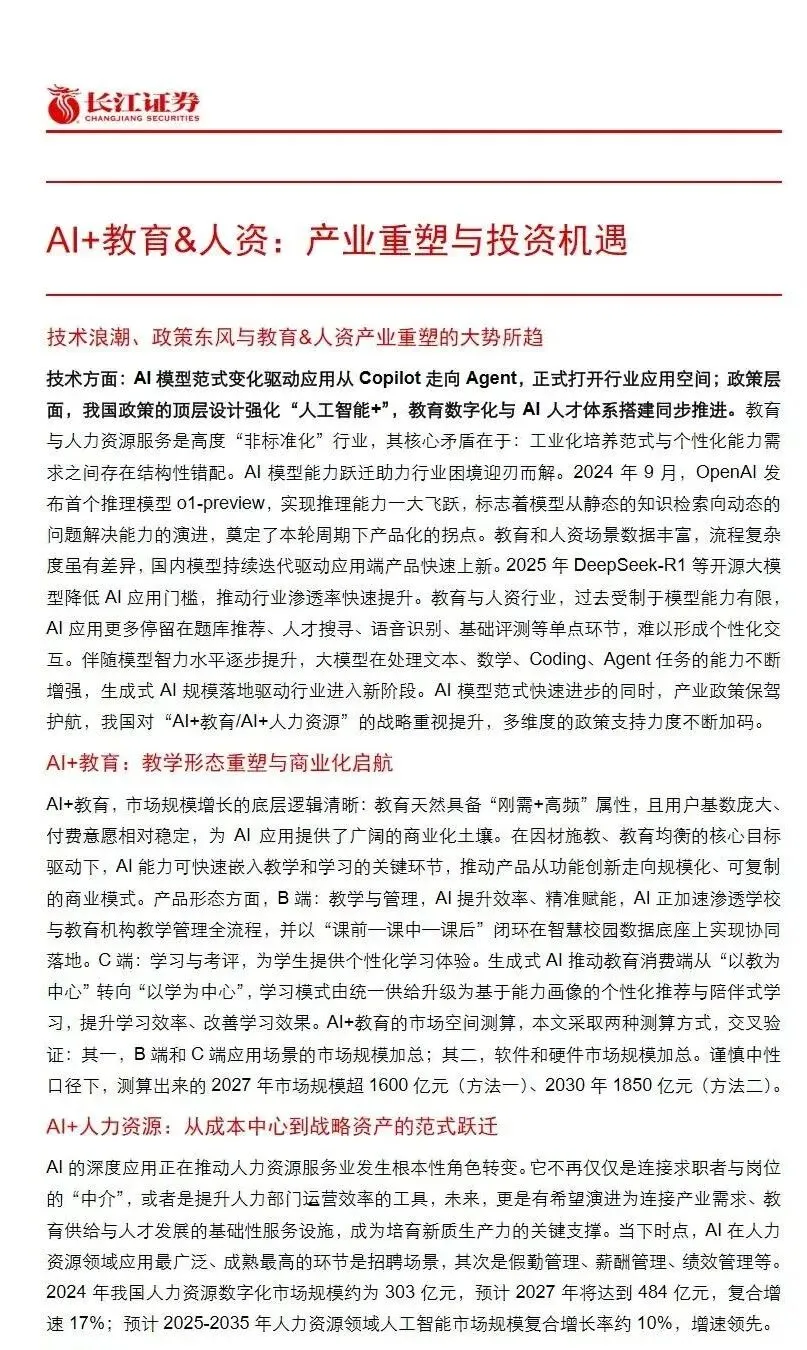 资源名称:长江证券《AI+教育&人资:产业重塑与投资机遇》34页