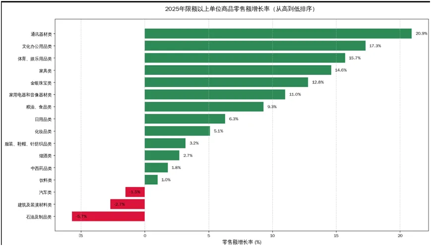 8、零售品类销售摘录:粮油、食品(+9.3%)、文化办公(+17.3%)、家具类(14.6%)、通讯器材(20.9%)、家电音像(11%);下降的有汽车(-1.5%)、石油及其制品(-5.7%)、建筑类(-2.7%);【文化办公用品和家具的变化超出预期,是一个可以发掘的冷门】