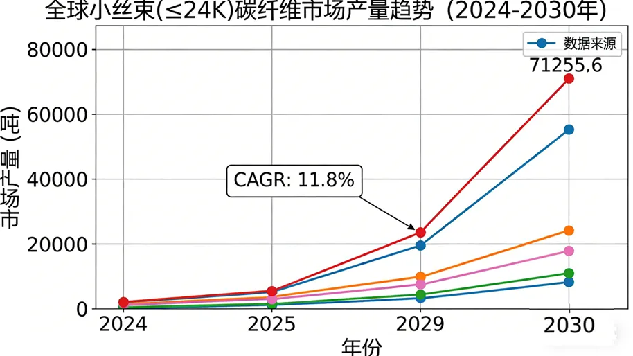 新兴市场稳步发展:南美、中东及非洲市场基数较小,增速相对平缓(CAGR分别为6.1%和3.1%),表明小丝束碳纤维在这些区域的工业化与高端化应用仍处于渗透初期。