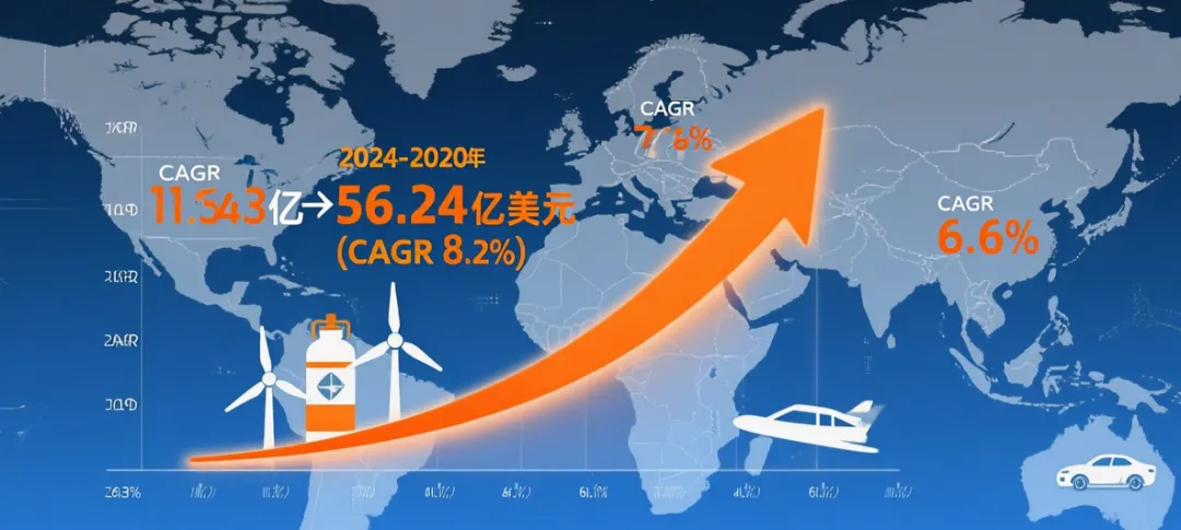 北美与欧洲保持稳健增长:北美市场产量CAGR为9.1%,至2030年将达到约4.50万吨,其增长深度绑定航空航天(新机型交付、维修市场)与高端汽车(电动化、轻量化)的持续需求。欧洲市场产量CAGR为8.0%,至2030年预计达3.77万吨。增长核心驱动力来自于严格的环保法规推动的可再生能源(风电)投资、航空航天项目以及汽车产业的绿色转型。