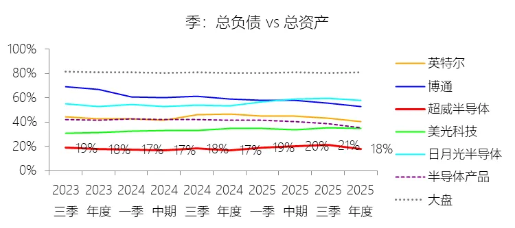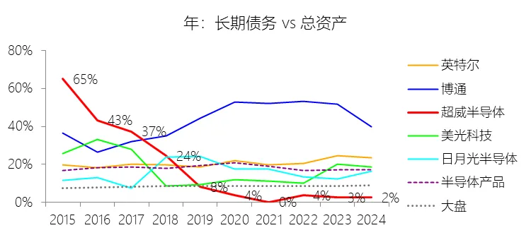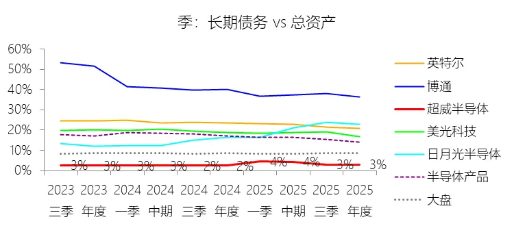 长期债务:2025年末,超威半导体的长期债务为23.48亿美元,对比年初增长36.43%,与总资产的比例为3.05%,同比上升0.57个百分点;2015-2024年(十年),此项合计为126.03亿美元,平均比例为5.11%,比半导体产品行业的均值低13.01个百分点,长期呈下降趋势。