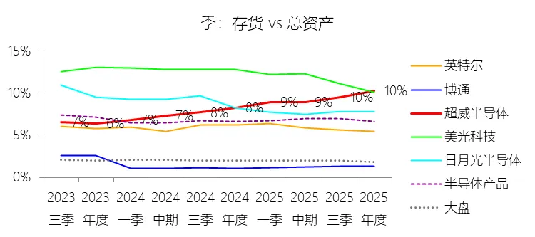 存货:2025年末,超威半导体的存货为79.20亿美元,对比年初增长38.12%,与总资产的比例为10.30%,同比上升2.01个百分点;2015-2024年(十年),此项合计为211.60亿美元,平均比例为8.58%,比半导体产品行业的均值高1.85个百分点,长期呈下降趋势。