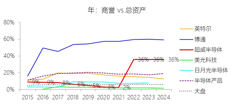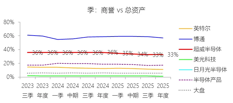 商誉:2025年末,超威半导体的商誉为251.26亿美元,对比年初增长1.16%,与总资产的比例为32.66%,同比下降3.22个百分点;2015-2024年(十年),此项合计为752.90亿美元,平均比例为30.53%,比半导体产品行业的均值高12.24个百分点,长期呈上升趋势。比例短期下降主要由于2025年总资产的增速(11.12%)显著快于商誉的增速(1.16%)。虽然公司在2025年通过收购ZT Systems确认了约2.87亿美元的新商誉,但同年为支持第五代AMD EPYC处理器和AMD Instinct MI350系列GPU的强劲需求,公司大幅增加了先进工艺节点的库存储备,且强劲的盈利表现使现金及短期投资总额大幅跃升,导致总资产规模的扩张速度远超商誉的增长,从而在分子(商誉)微增的情况下,因分母(总资产)的快速扩大而稀释了占比。比例长期上升主要由于公司战略重点从内部研发转向“内部研发+大规模并购”双轮驱动,特别是2022年完成了半导体史上规模最大的赛灵思(Xilinx)收购案,确认了高达227.84亿美元的商誉,使商誉规模从2021年底的2.89亿美元实现了跨越式增长;随后公司持续通过收购Pensando(10.98亿美元商誉)、Silo AI(5.77亿美元商誉)以及ZT Systems不断充实资产负债表中的商誉资产,以快速补齐在数据中心、嵌入式和AI基础设施领域的短板。比例高于半导体产品行业的均值主要由于AMD作为代工模式(Fabless)企业,避免了像部分行业竞争对手(如IDM模式的英特尔)那样需要维持极其庞大的晶圆厂物业、厂房及设备资产,其物业设备占总资产的比重长期仅为3%左右,远低于行业平均水平;同时,公司近年来的一系列战略并购均属于针对行业领军企业的高溢价收购,导致确认的商誉金额巨大,这种资产结构的差异使得AMD的商誉占比在资产负债表上表现得尤为突出,远超那些主要依靠内源性增长或拥有大规模有形资产的同业企业。该商誉巨大且容易减值,是超威半导体的风险项。