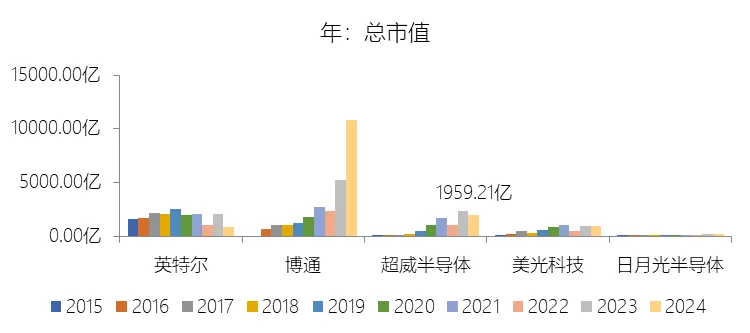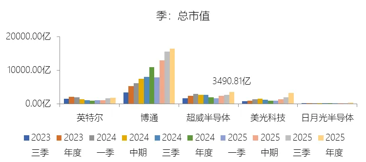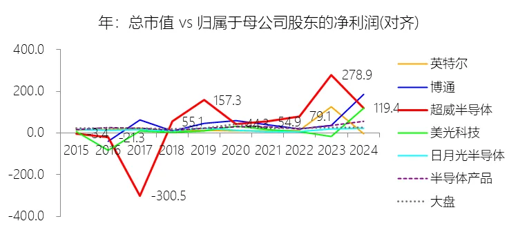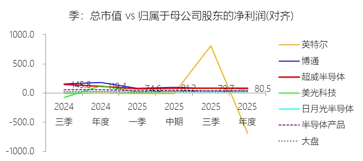 市盈率:2025年,超威半导体的归属于母公司股东的净利润(对齐)为43.35亿美元,对比年初增长164.17%,总市值与归属于母公司股东的净利润(对齐)的比例为80.5倍(市盈率),同比下降38.87个倍数;2015-2024年(十年),此项合计为89.54亿美元,平均比例为102.5倍,比半导体产品行业的均值高72.5个倍数,长期呈上升趋势。