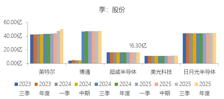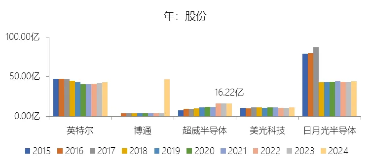 股份增长率:2025年末,超威半导体的股份为16.30亿股,对比年初增长0.49%,增速同比(去年同期)上升0.12个百分点;2015-2024年(九年)增长104.7%,年复合增长8.28%,比半导体产品行业的复合增速高3.94个百分点,长期呈下降趋势。