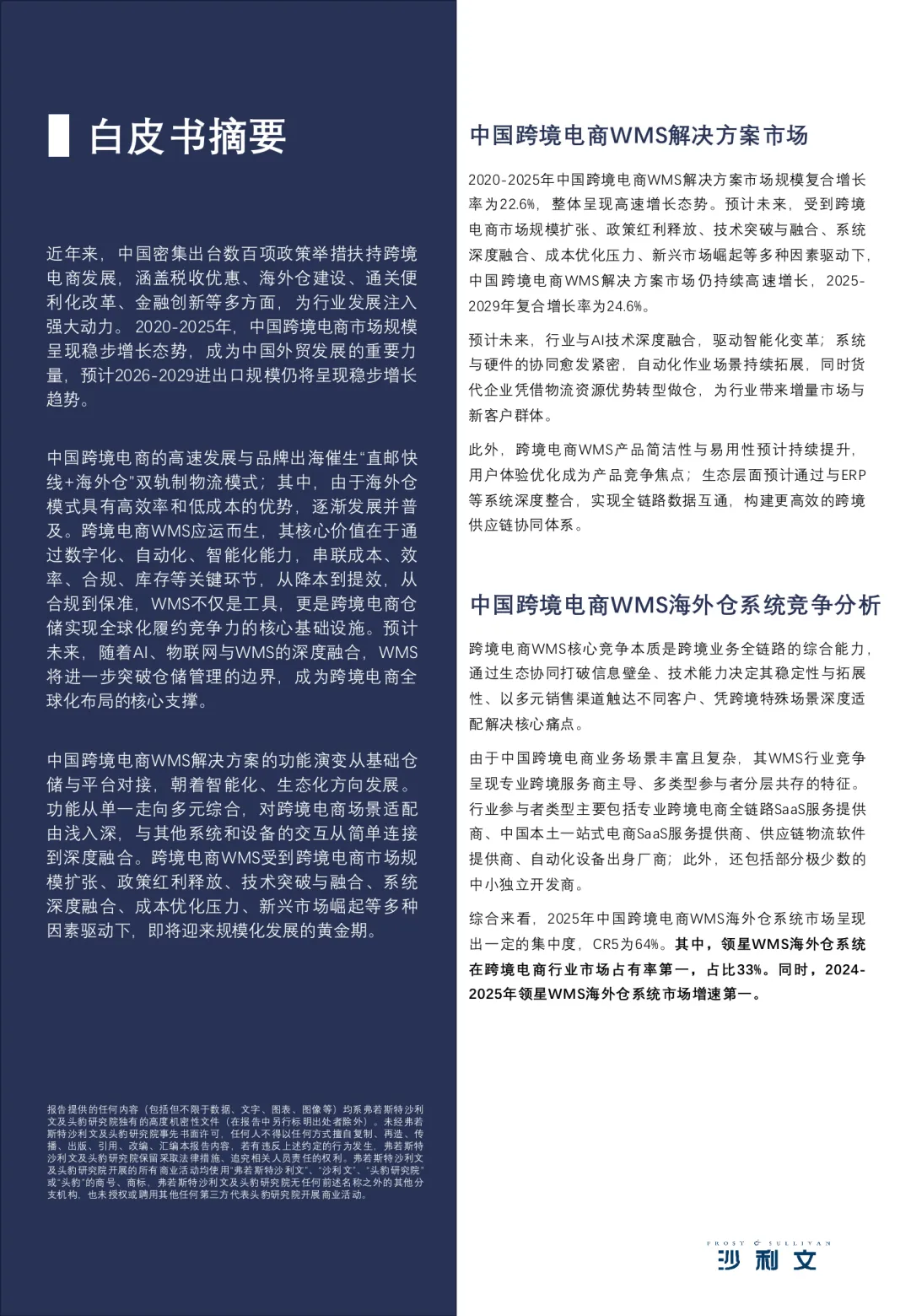 2026年,中国跨境电商WMS解决方案市场保持高速增长,2020至2025年间复合增长率达22.6%。随着跨境电商规模扩大、政策支持加强、技术融合深化及成本优化需求提升,预计2025至2029年市场将维持24.6%的复合增长。政策在税收优惠、海外仓建设、通关便利化等方面持续发力,为行业发展提供支撑。跨境电商物流模式呈现“直邮快线+海外仓”双轨制,其中海外仓凭借效率高、成本低的优势逐步普及。WMS系统作为核心工具,通过数字化、自动化与智能化手段,有效整合库存、合规、效率等关键环节,成为实现全球化履约的重要基础设施。AI与物联网技术的深度融合将推动WMS突破传统仓储管理边界,向更广泛的供应链协同方向发展。WMS功能从基础对接转向智能化、生态化,系统间交互由简单连接升级为深度整合。行业参与者包括专业跨境SaaS服务商、本土电商SaaS提供商、供应链物流软件公司以及自动化设备厂商等,呈现多元化格局。2025年,市场集中度较高,CR5达到64%,领星WMS以33%的市场份额位居首位,并在2024至2025年间实现最高增速。跨境电商场景复杂多变,WMS竞争本质在于全链路综合能力,包括生态协同、技术稳定性、客户触达能力及对特殊场景的适配性。同时,产品易用性与用户体验优化成为重要竞争点。行业面临技术迭代、成本控制、合规要求等挑战,但整体发展趋势积极,具备广阔发展空间。
