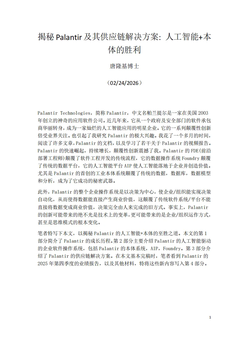 【全球行业报告库】2026揭秘Palantir及其供应链解决方案:人工智能+本体的胜利(附下载)