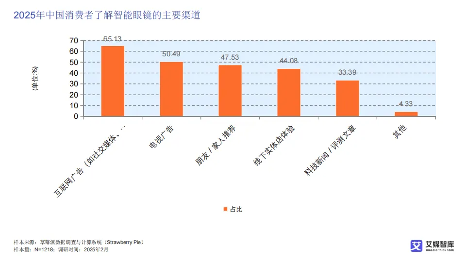 艾媒智库2025年发布的中国智能眼镜行业发展与用户行为调查数据显示,全球及中国智能眼镜市场均呈高速增长态势,同时国内消费者对该产品的认知、购买及使用行为呈现出鲜明特征,行业发展兼具机遇与待解问题。